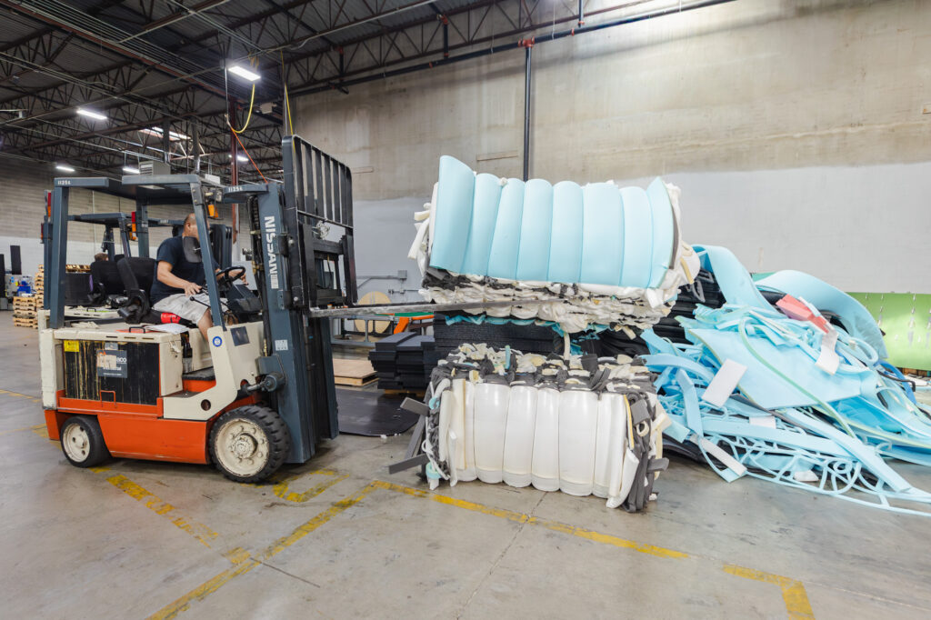 All of the scraps created in our custom fabrication project are recycled together and made into carpet padding or other products.